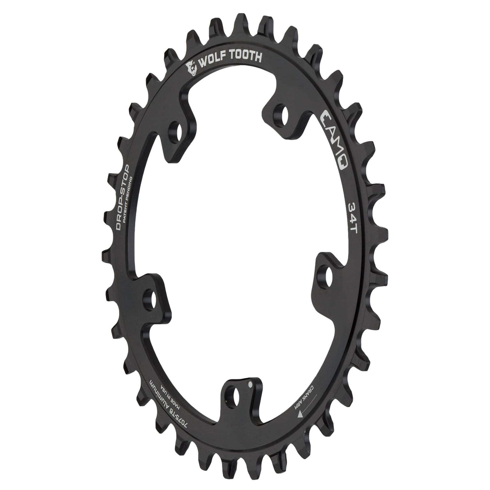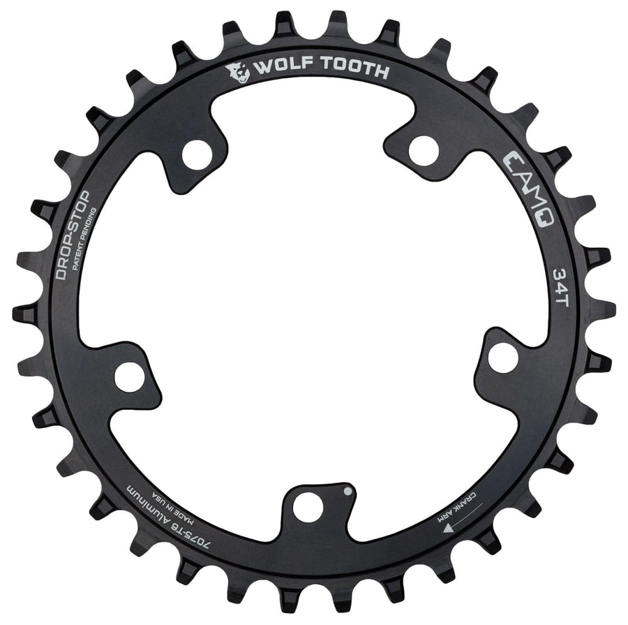 - El perfil de dientes ancho/estrecho Drop-Stop® patentado por Wolf Tooth ofrece la máxima retención de cadena y capacidad para eliminar el barro.