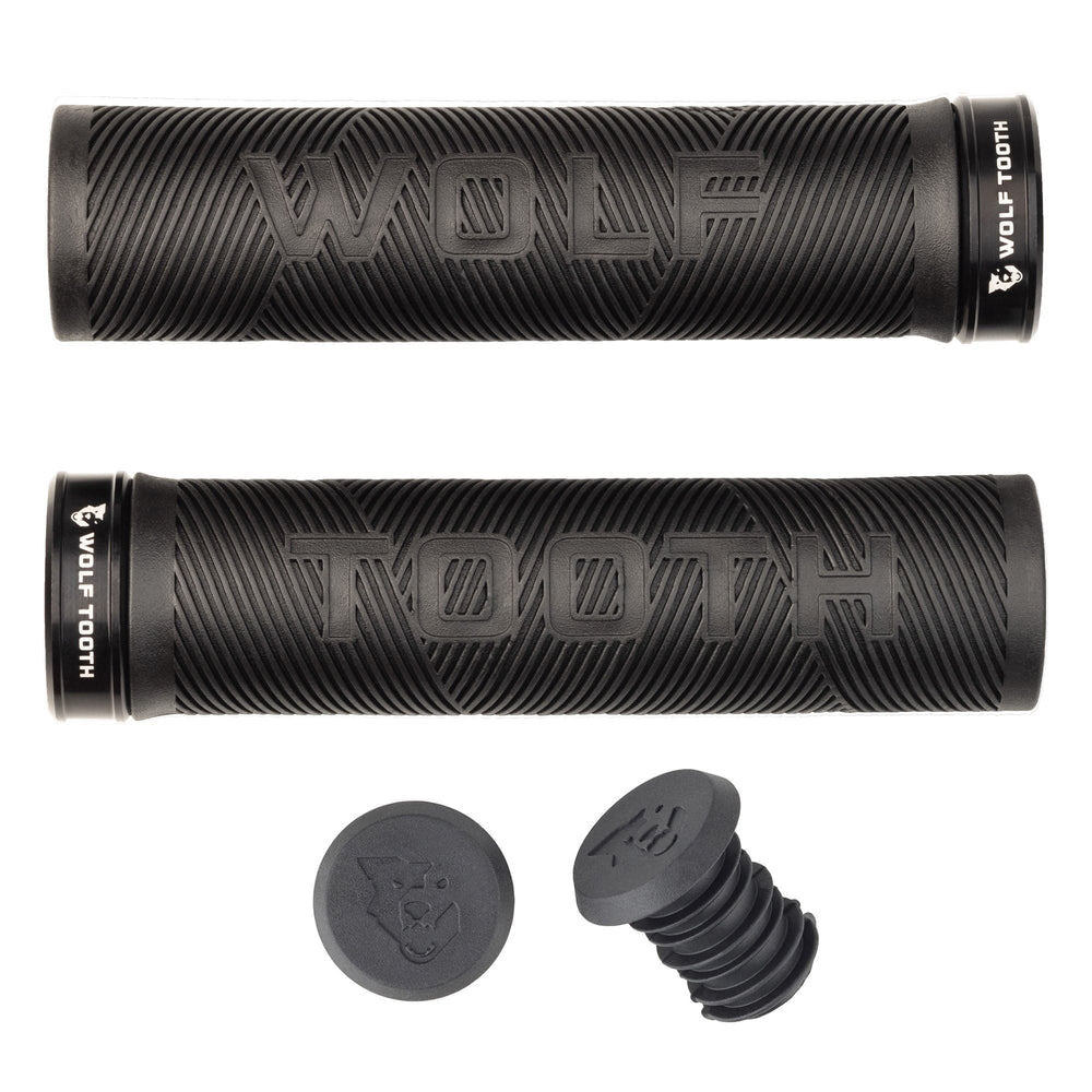 Los puños Wolf Tooth Echo Lock-On están hechos para el ciclismo de montaña en cualquiera de sus formas. El material de caucho es suave y pegajoso al tacto, mientras que alternando patrón diagonal de agarre mantiene jinete lugar de la mano con o sin guantes condiciones. Negro moldeado vienen cuellos de aluminio anodizado que coinciden con ocho colores primarios otras piezas de acento lobo. Incluye tapones de extremo de la barra de plástico. Actualizar tapones de aleación a juego almacenar herramientas de su manillar encajan sistema.